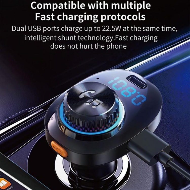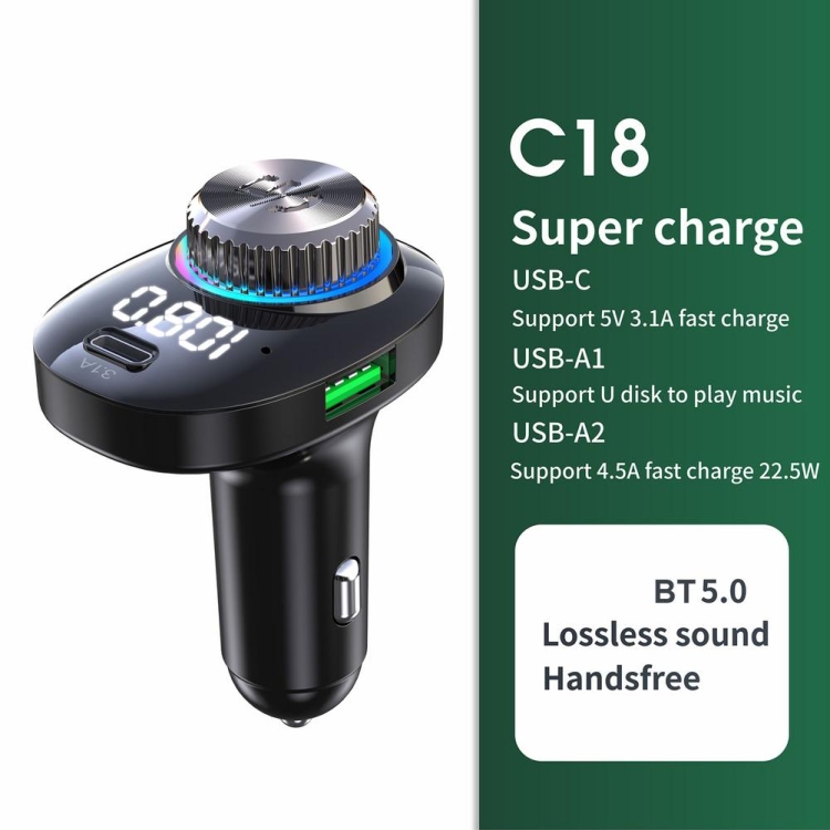 C18 Car Audio Receiver 3.1A Quick Charge USB Device BT 5.0 Color LED Backlight FM Transmitter