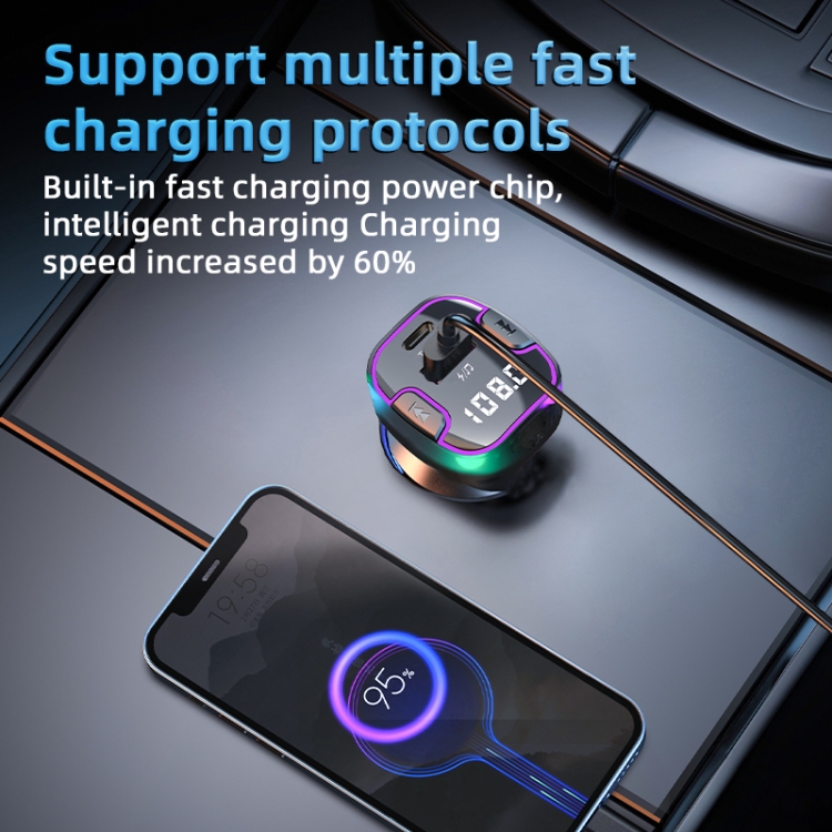 C49 With Type-C+USB Port FM Transmitter Car Bluetooth Adapter Ambient Light MP3 Music Player