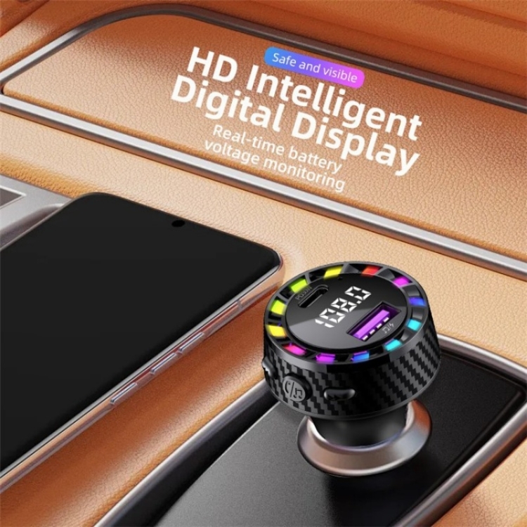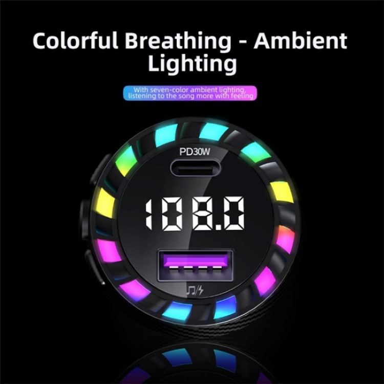 C55 With Breathing Light Bluetooth FM Transmitter USB+Type-C Car Fast Charger