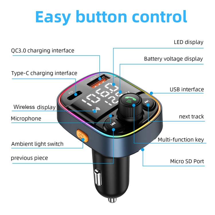 C87B PD QC3.0 Quick Charger Bluetooth 5.0 FM Transmitter Hands-free MP3 U Disk Car Music Player Kit