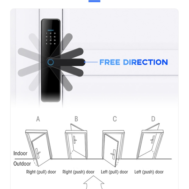 2. 8 layers of smart technology unlocking: WIFI unlocking, Bluetooth unlocking, APP remote unlocking, fingerprint unlocking, password unlocking, magnetic card unlocking, key unlocking, combination unlocking