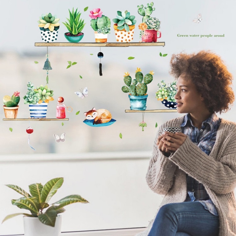 Cactus Potted PVC Self-adhesive Removable Wall Stickers