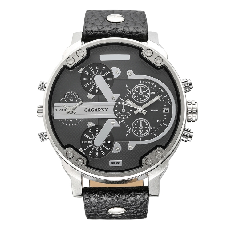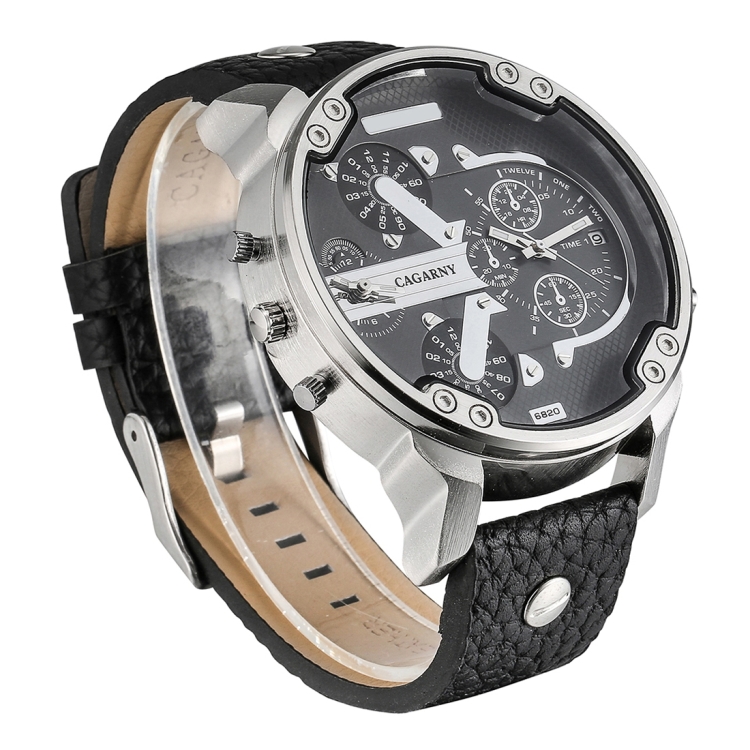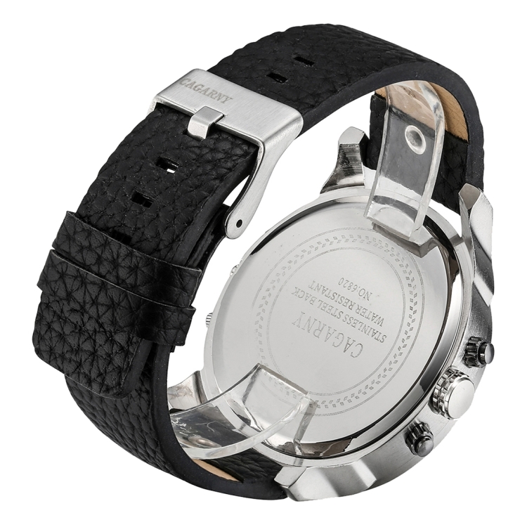 CAGARNY 6820 Fashionable Multifunctional Style Quartz Business Sport Wrist Watch with Leather Band & GMT Time & Calendar & Luminous Display for Men(Brown Band White Window)