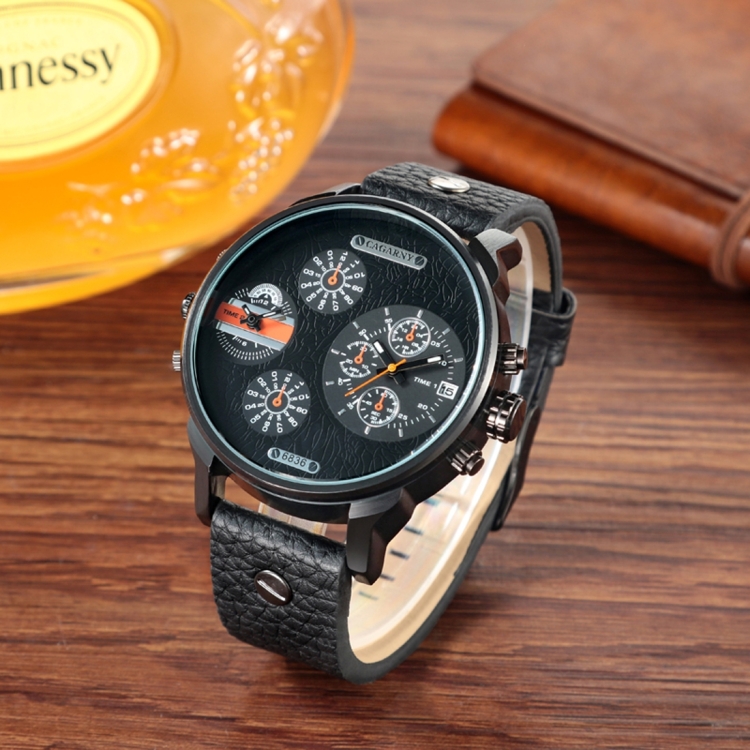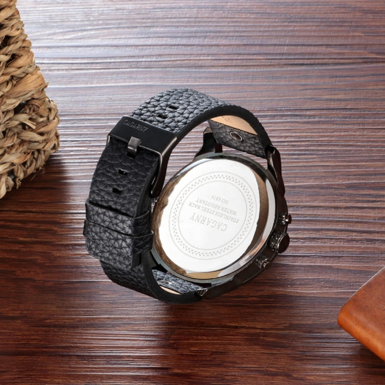 CAGARNY 6836 Fashion Waterproof Dual Quartz Movement Wrist Watch with Leather Band