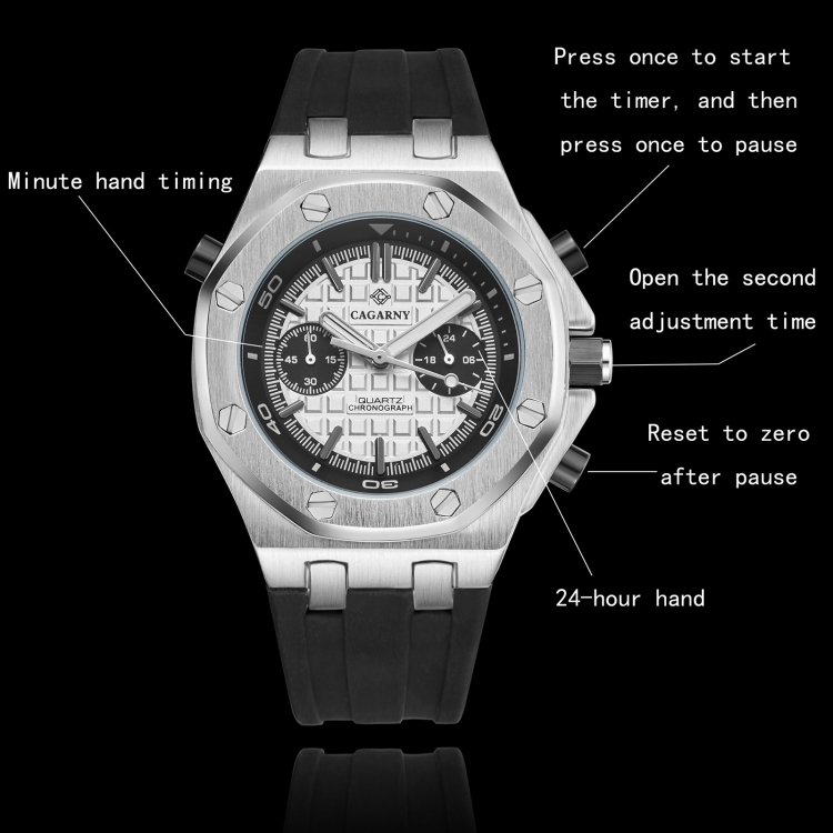 CAGARNY 6861 Checkered Pattern Polygonal Dial Quartz Silicone Strap Watch