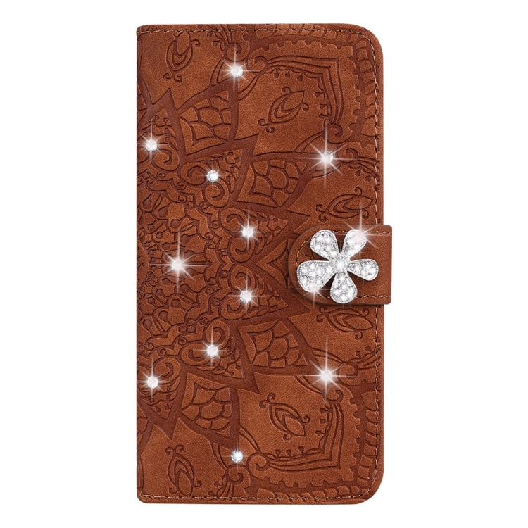 Calf Pattern Diamond Mandala Double Folding Design Embossed Leather Case with Wallet & Holder & Card Slots