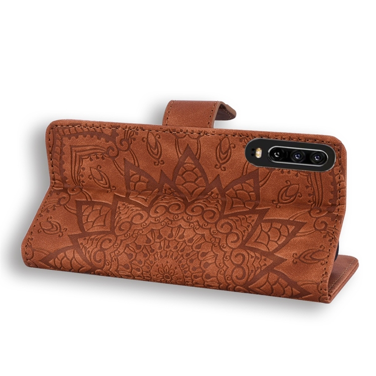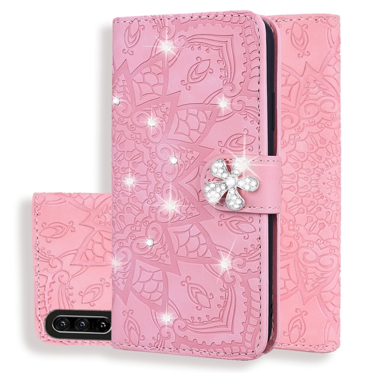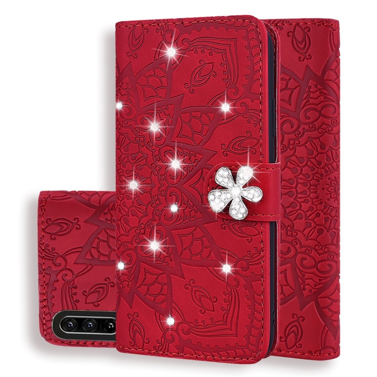 Calf Pattern Diamond Mandala Double Folding Design Embossed Leather Case with Wallet & Holder & Card Slots