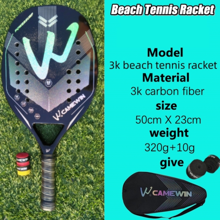 CAMEWIN 3K Carbon Fiber Rough Surface Beach Tennis Racket With Cover Bag