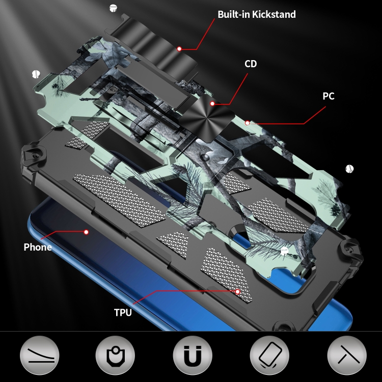 Camouflage Armor Shockproof TPU + PC Magnetic Protective Case with Holder