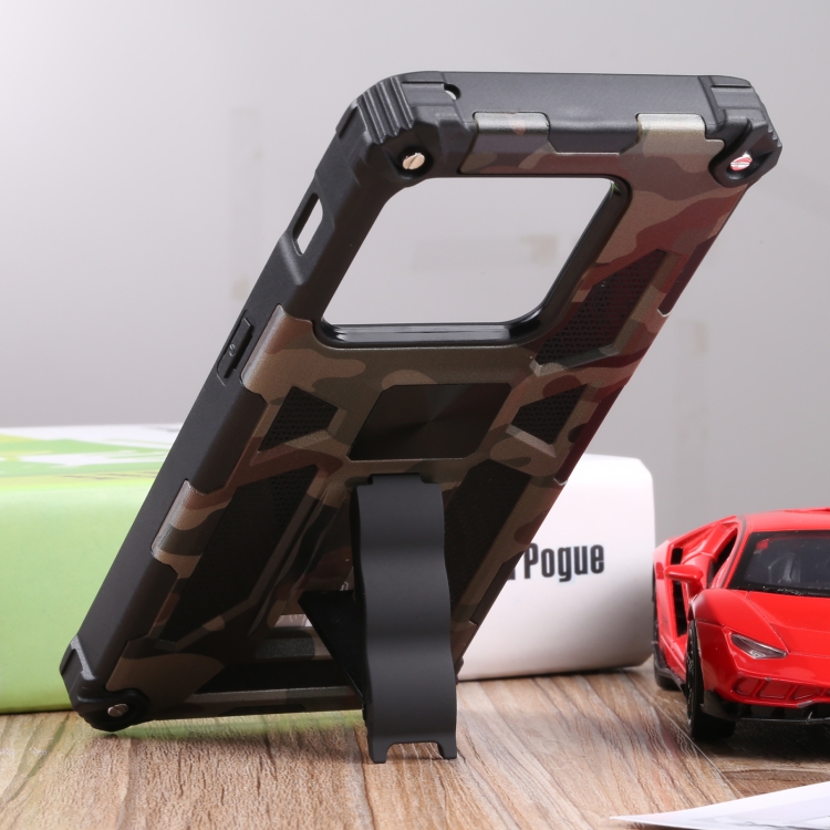 Camouflage Armor Shockproof TPU + PC Magnetic Protective Phone Case with Holder