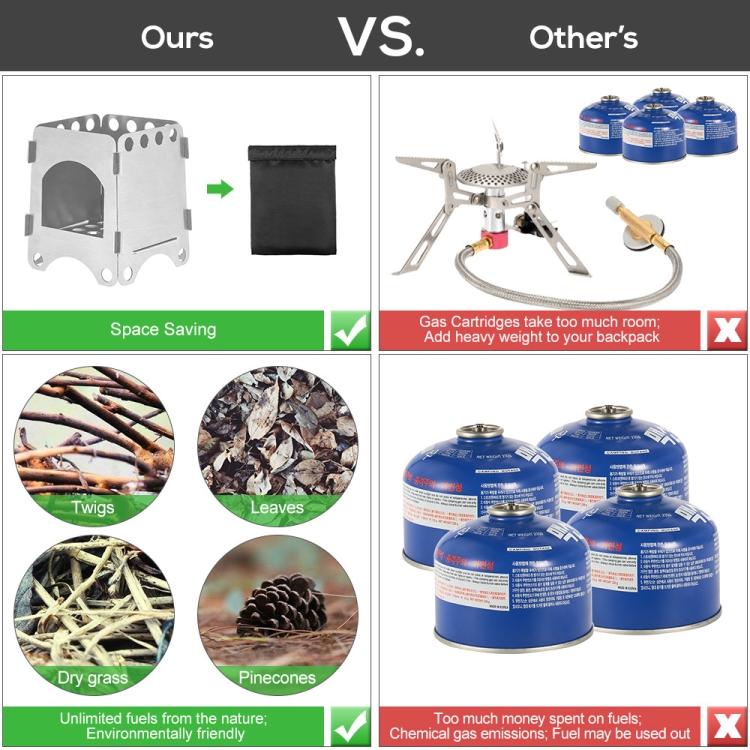 Camping Wood Stove Ultralight Folding Pocket Stove Outdoor Backpacking Cooking Wood Burning Stove Aluminum-Titanium