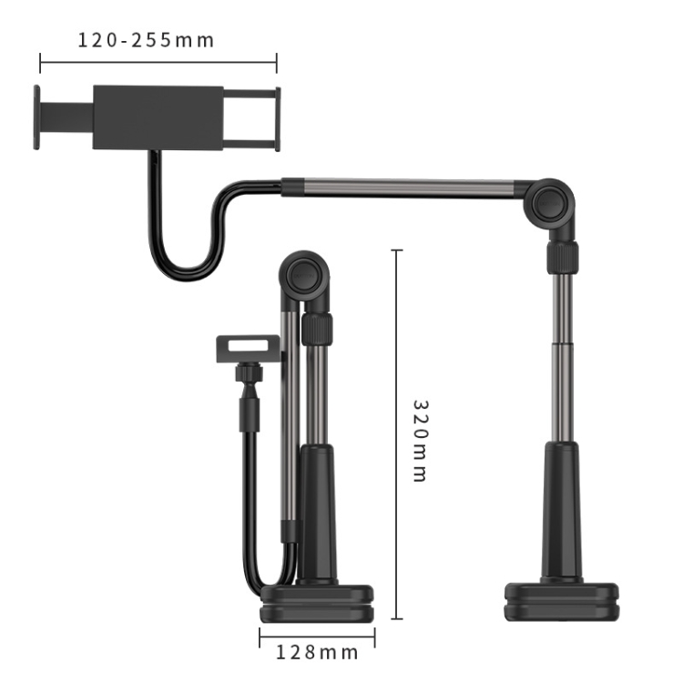 5. Pull to extend the clip, the extension range of 120-255 mm, compatible with the use of tablets / cell phones