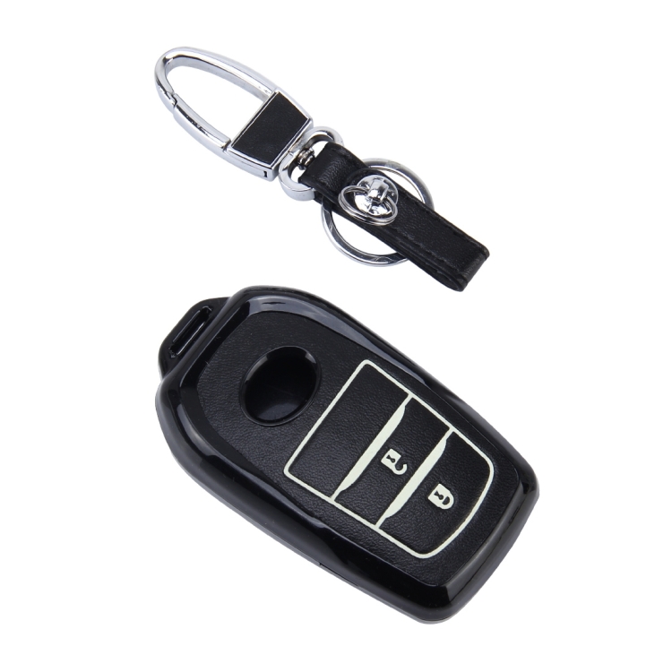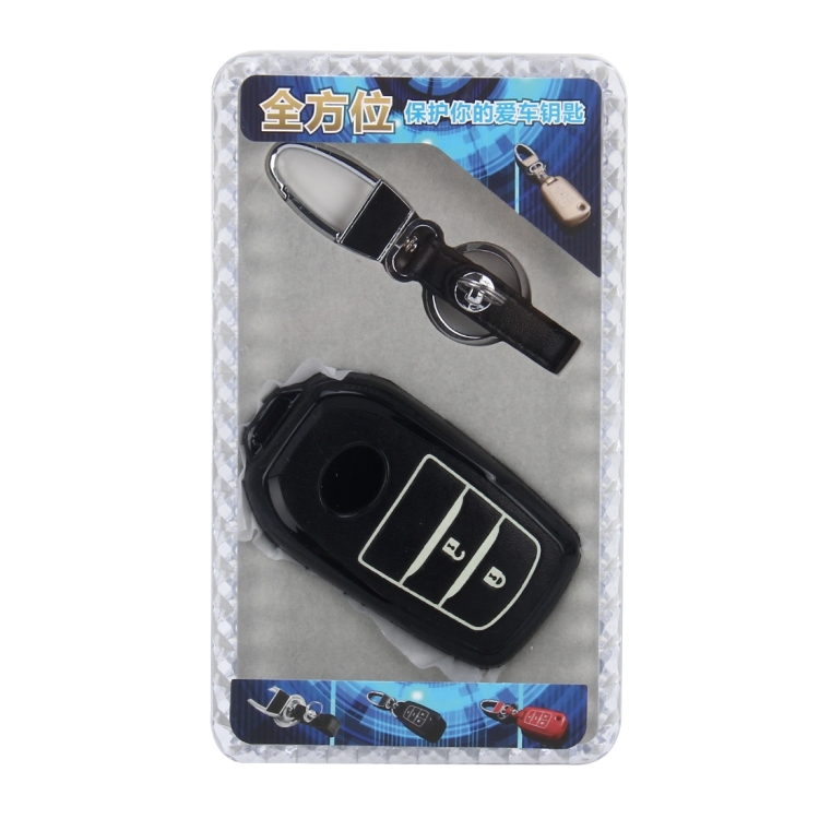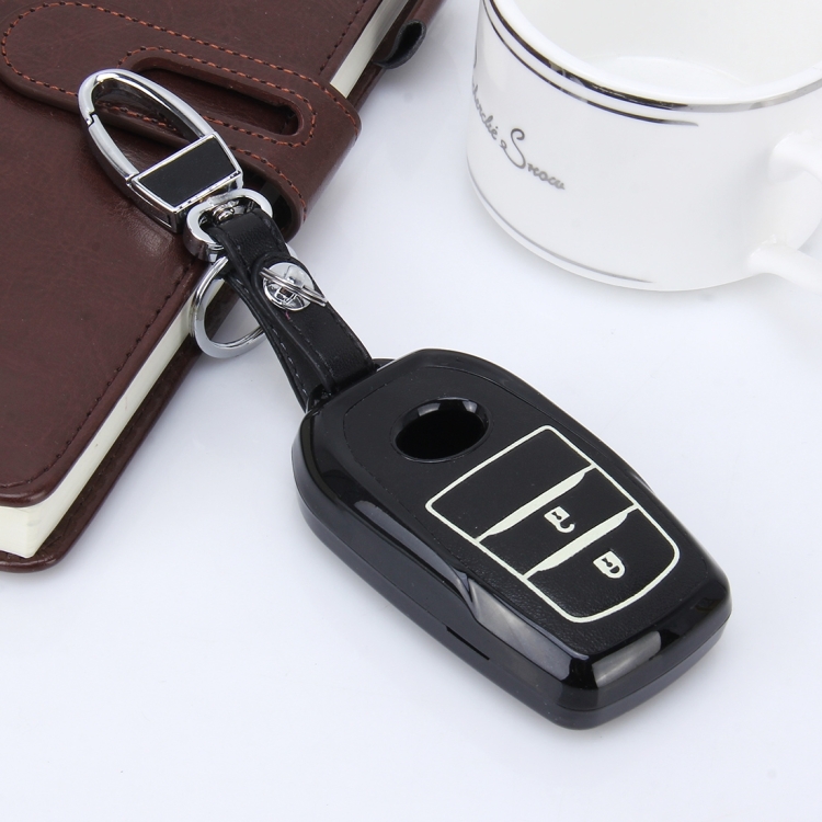 Car Auto PU Leather Intelligence Two Buttons Luminous Effect Key Ring Protection Cover for 2014 Version RAV4 2015 Version Highlander