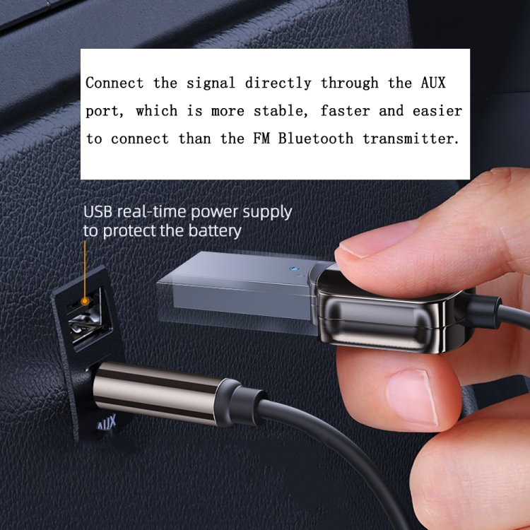 16. Connect the signal directly through the AUX port, which is more stable, faster and easier to connect than the FM Bluetooth transmitter.
