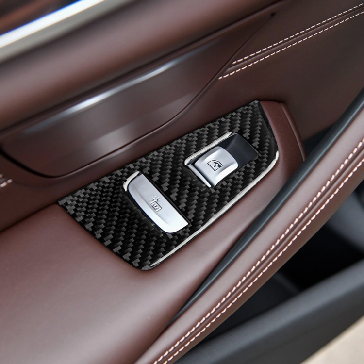 Car Carbon Fiber Door Window Lift Panel Decorative Sticker for BMW 5 Series G38 528Li / 530Li / 540Li 2018, Left Drive