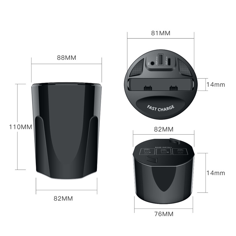 8. Packing list: car wireless charging cup x1, base (accessories) x1, car charger (with cable) x1, manual x1