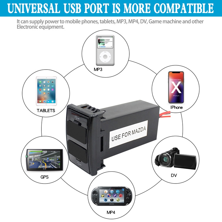 1. Dedicated USB charger for Mazda, fits for the Mazda cars with reserved sockets.