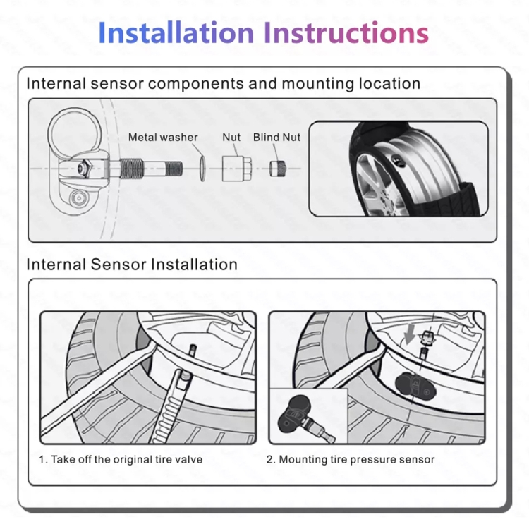 4. Using wireless transmission technology, the sensor will give an immediate warning when it detects abnormal tire temperature or pressure.