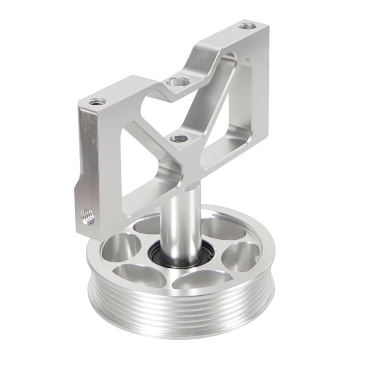 1. Pulley design. CNC Machined from Billet Aluminum. Smog Pump Idler Pulley w Bracket Kit. Double Bearing Design Strongest Side Load. Stronger support shaft for better bearing support. Bracket and or Pulley may vary depending on available inventory