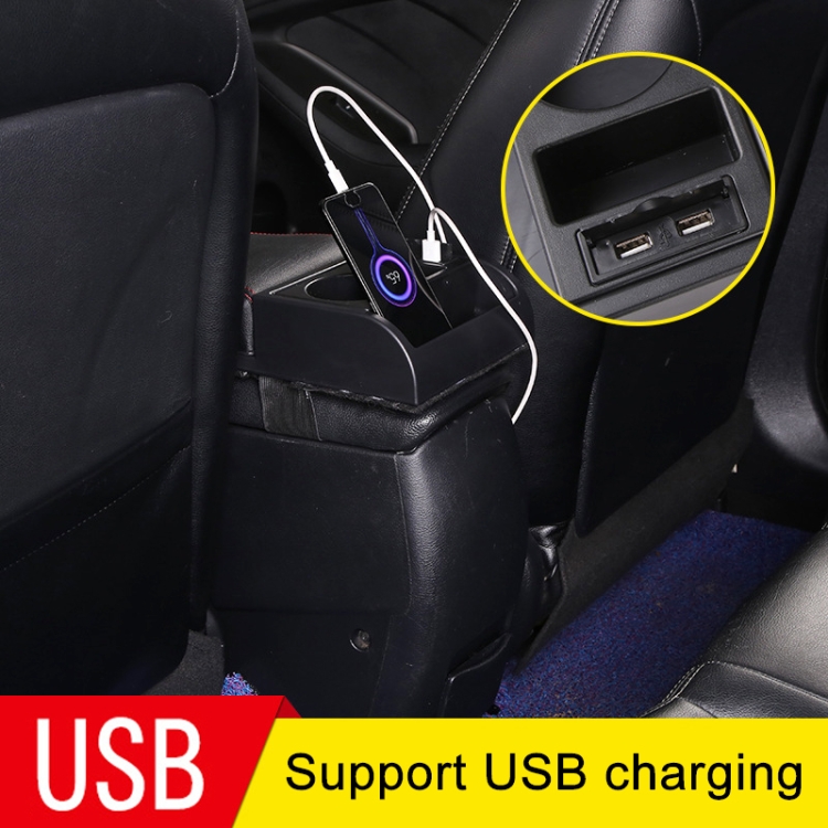 Car Multi-functional Dual USB Armrest Box Booster Pad, Microfiber Leather Straight Type