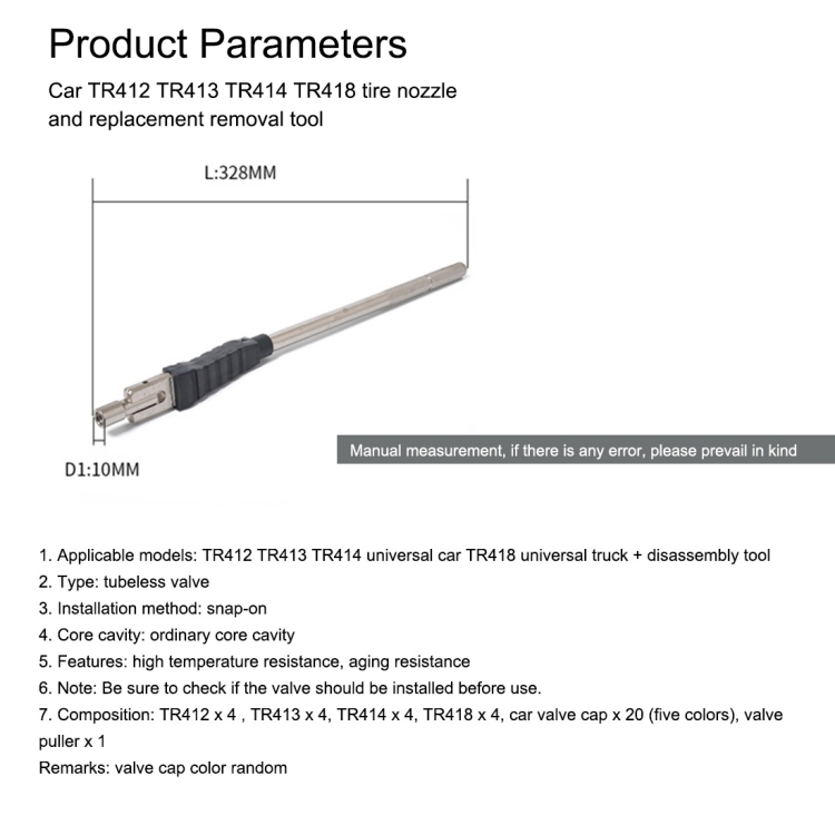 Car TR412 TR413 TR414 TR418 Tire Nozzle Valve Core Replacement Removal Tool Repair Parts Kit