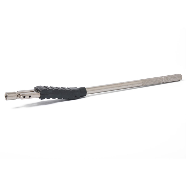 4. This tool is 12.5 inches long. The offset head is designed to work with most aftermarket wheels and rims, and the handle is knurled to prevent slippage during your job.
