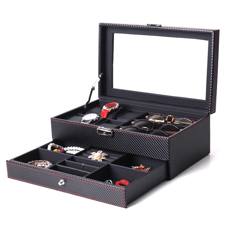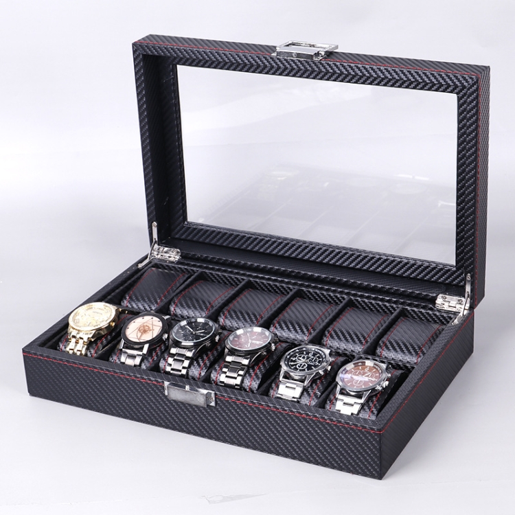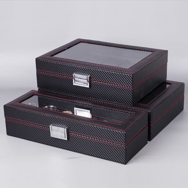 Carbon Fiber PU Leather Watch Box Jewelry Storage Box Packaging Box, Style:
