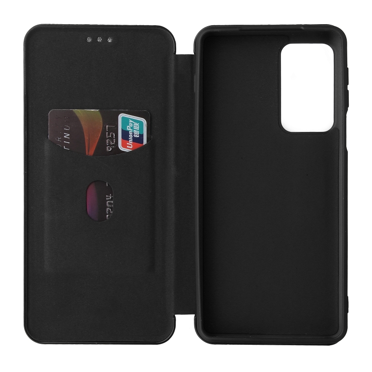 Carbon Fiber Texture Magnetic Horizontal Flip TPU + PC + PU Leather Case with Card Slot