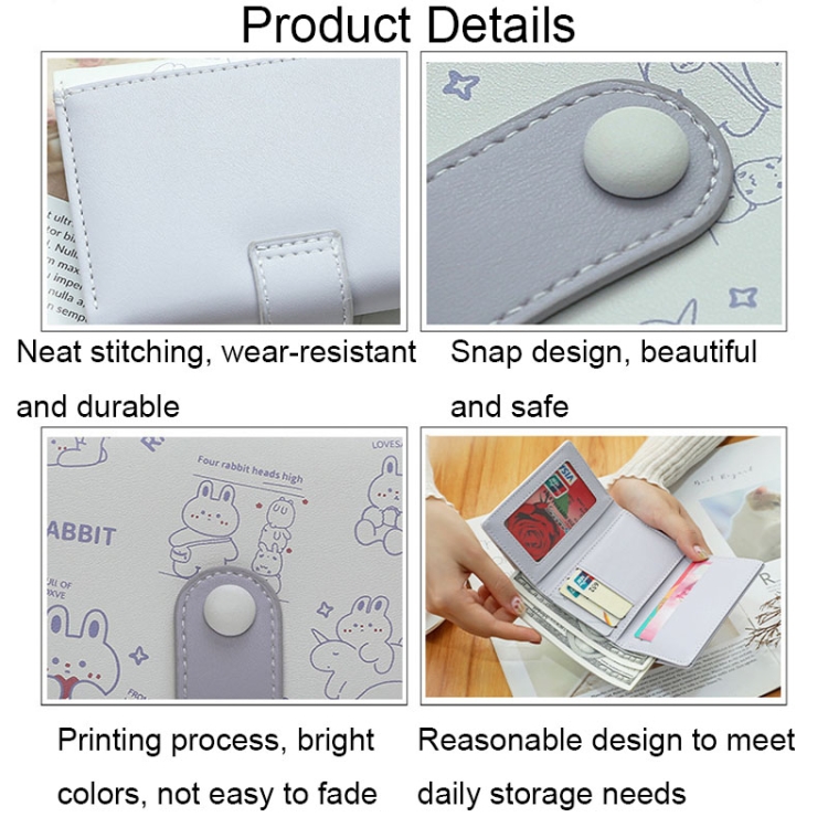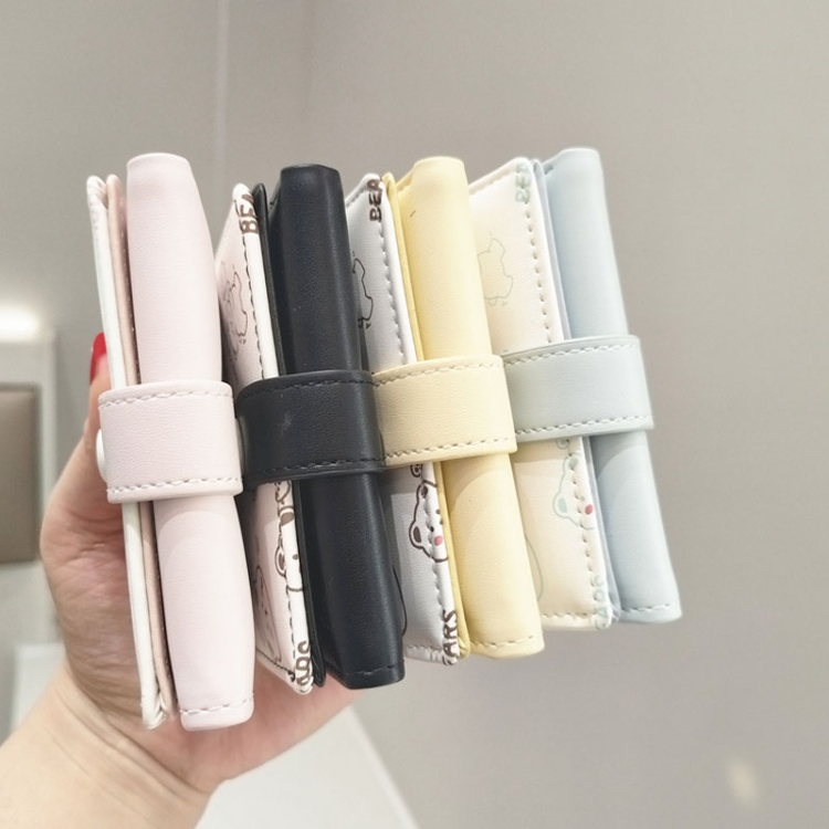 Cartoon Cute Bear Printed Wallet Large Capacity Buckle Tri-Fold Short Wallet