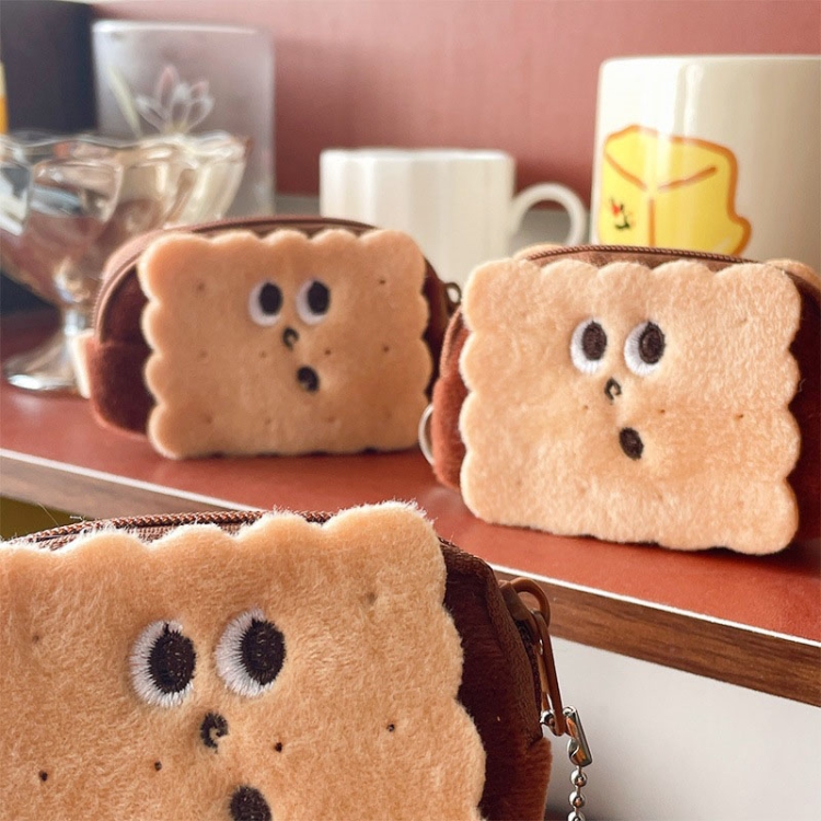 Cartoon Cute Crooked Mouth Cookie Plush Coin Purse Data Cable Lipstick Storage Bag