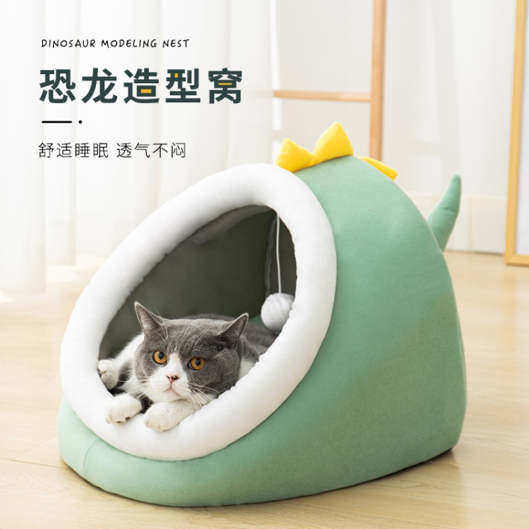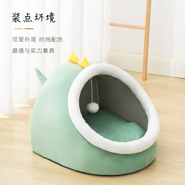Cartoon Dinosaur Semi-enclosed Warm Bed for Cats Removable and Washable Pet Bed