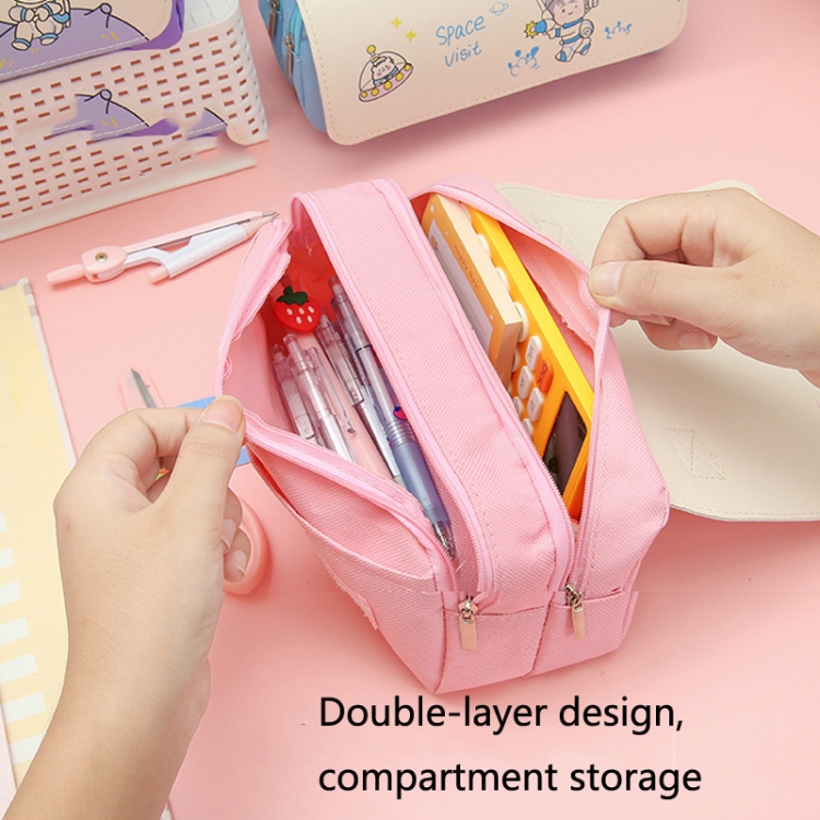 Cartoon Multifunctional Large-Capacity Pencil Case Student Cute Portable Stationery Box, Pink, Blue, Purple, Navy