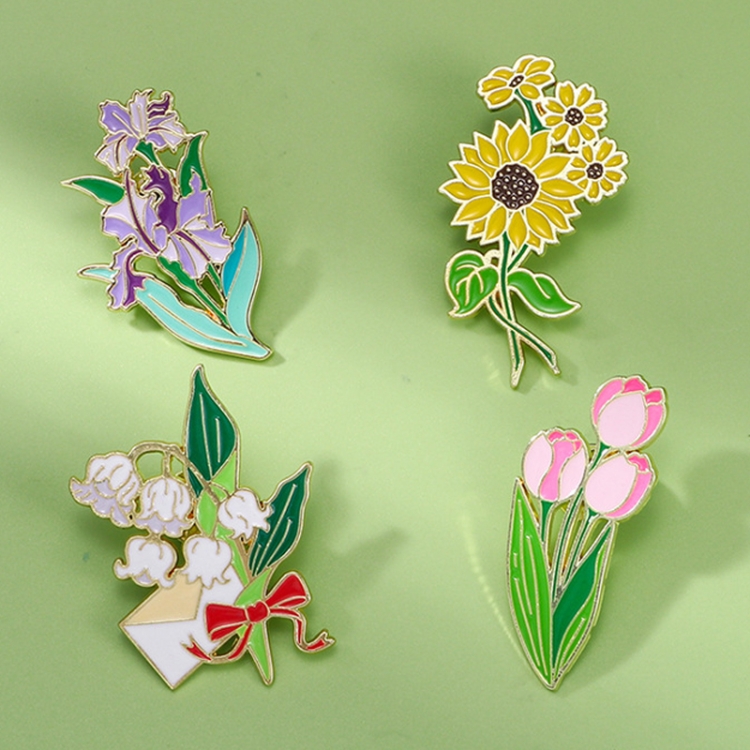 Cartoon Plant Flower Alloy Enamel Badge Garden Style Sunflower Clothing Bag Brooch Ornament