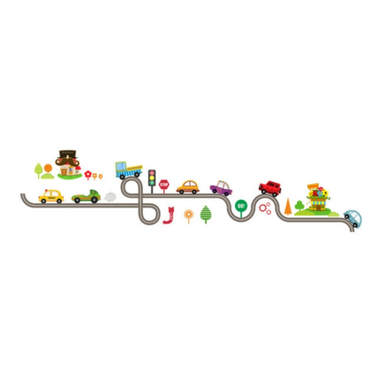 Cartoon Track Car Children Bedroom Wall Stickers Decorative Green Wall Stickers