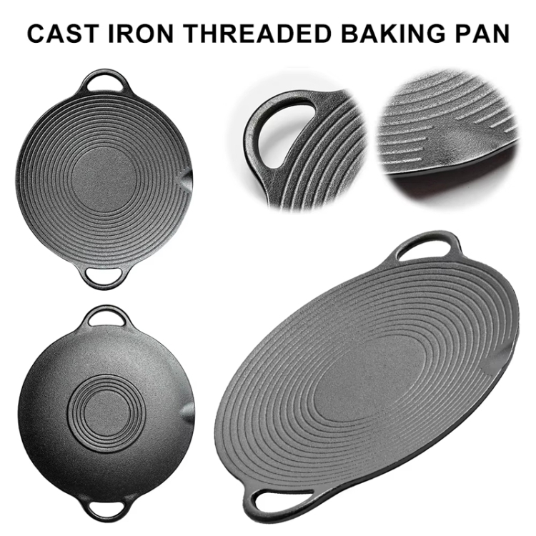 Cast Iron Threaded Grill Pan Outdoor Non-Stick Frying Pan Uncoated Teppanyaki Pot