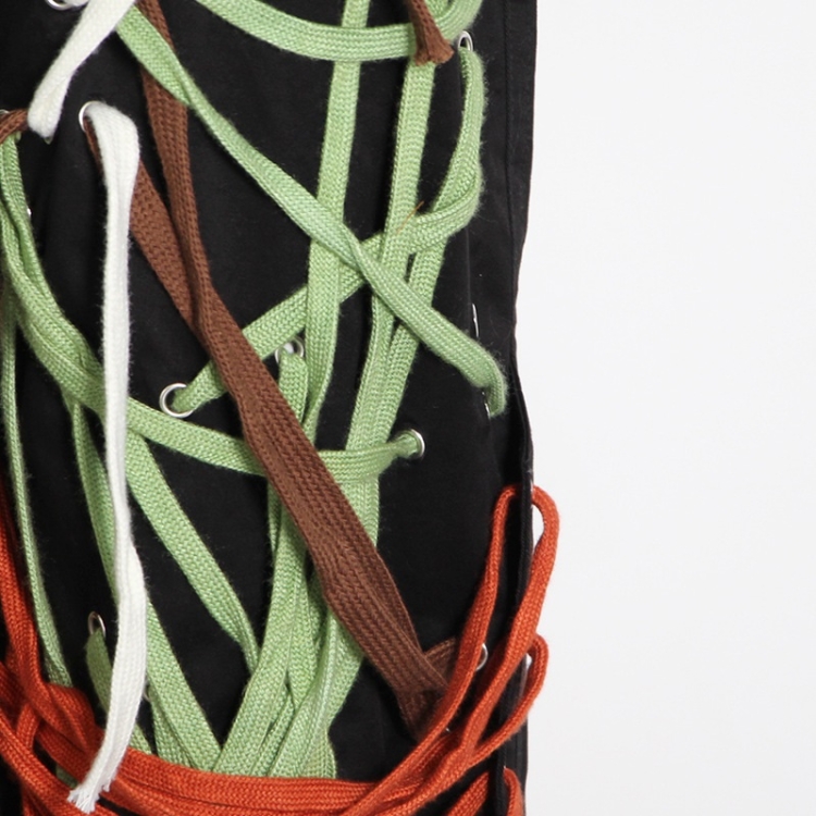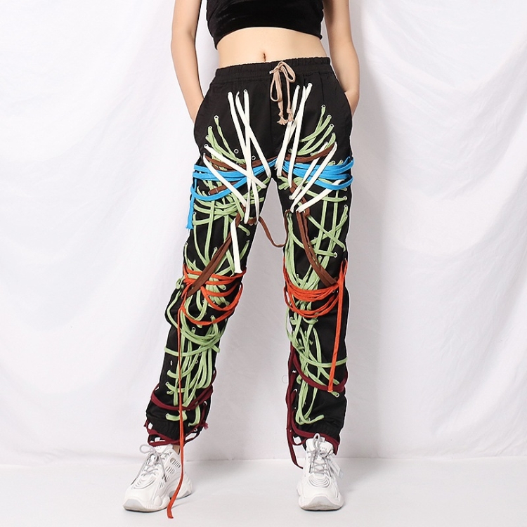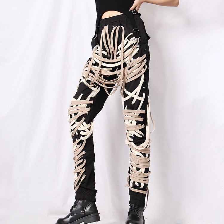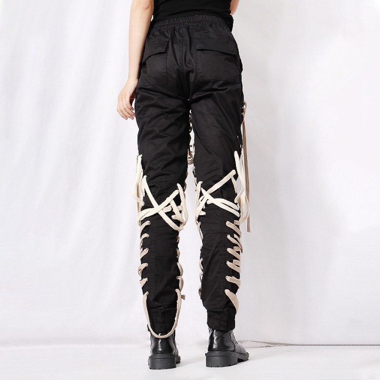Casual Black Leggings Fashion Strap Pockets Multi-layer Niche Design Trousers