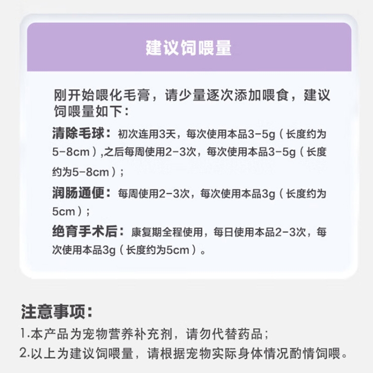 2. 0 mineral oil, 0 hydrogenated vegetable oil, by nourishing the intestinal tract, so that the hairballs will slide out with the stool
