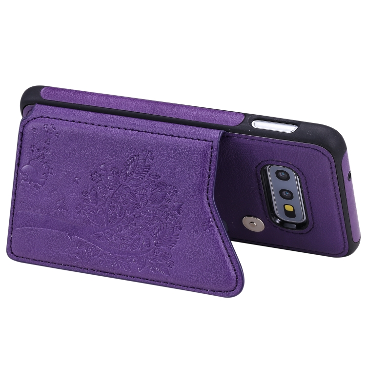 Cat Tree Embossing Pattern Shockproof Protective Case with Card Slots & Photo Frame & Holder
