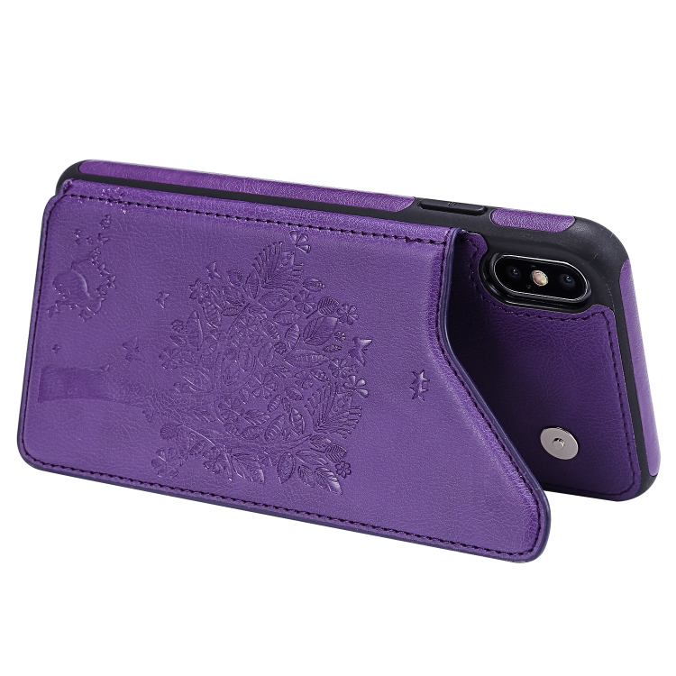 Cat Tree Embossing Pattern Shockproof Protective Case with Card Slots & Photo Frame & Holder