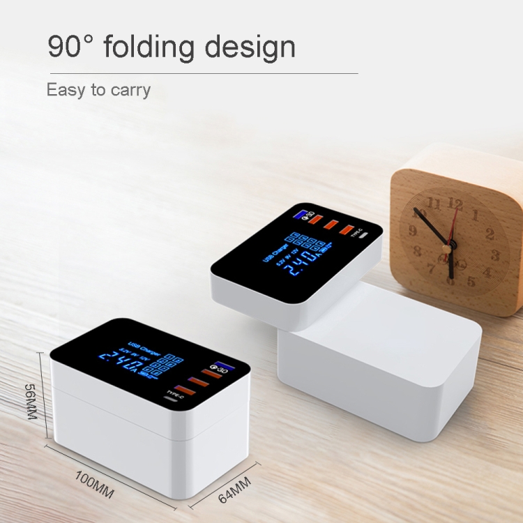 CDA33Q 40W QC 3.0 USB + 3 USB Ports + USB-C / Type-C Ports Multi-function Charger with LED Display, UK Plug