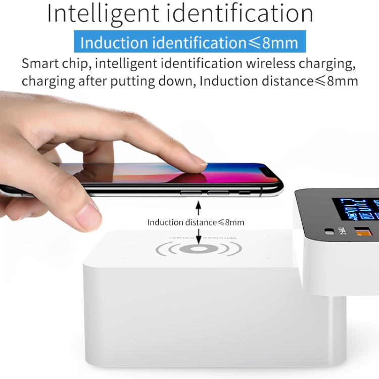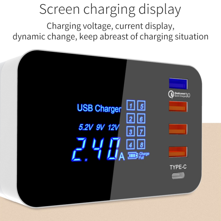 CDA33QW 40W QC 3.0 USB Ports + 3 USB Ports + USB-C / Type-C Ports + Wireless Charging Multi-function Foldable Charger with LED Display, AU Plug