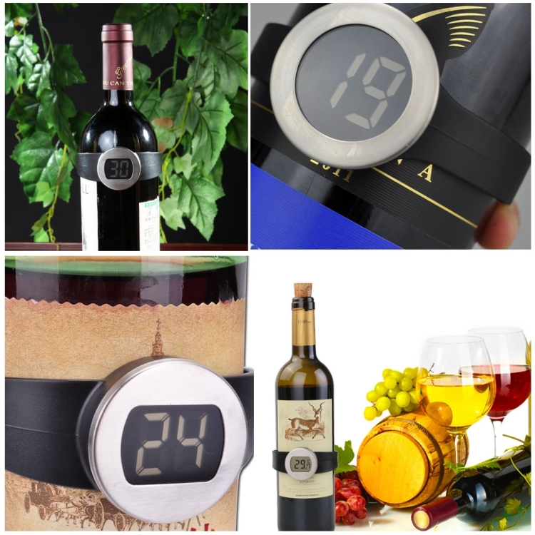 Celsius Degree Digital LCD Display Wine Bottle Thermometer, Suitable Bottle Diameter: 65-80mm (Black + Silver)