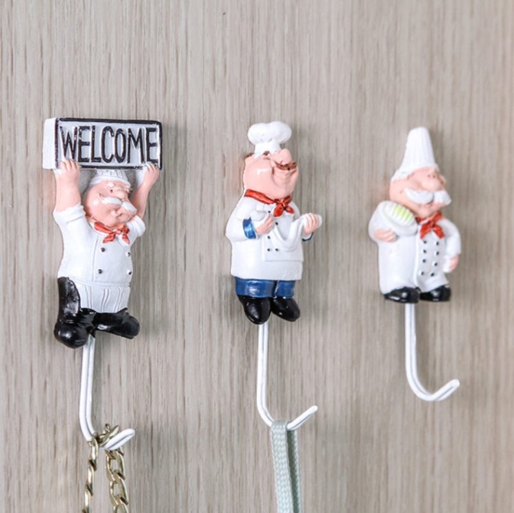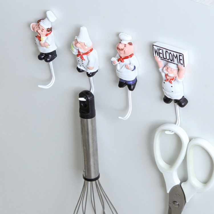 Chef Shape Strong Viscose Stainless Steel Load-bearing Seamless Nail Wall Hook Random Style Delivery