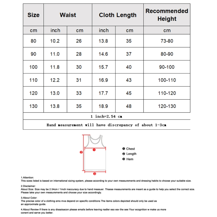 Children Cotton Sleeveless Vest Crew Neck Summer Sports Style Tank Tops, 80cm, 90cm, 100cm, 110cm, 120cm, 130cm