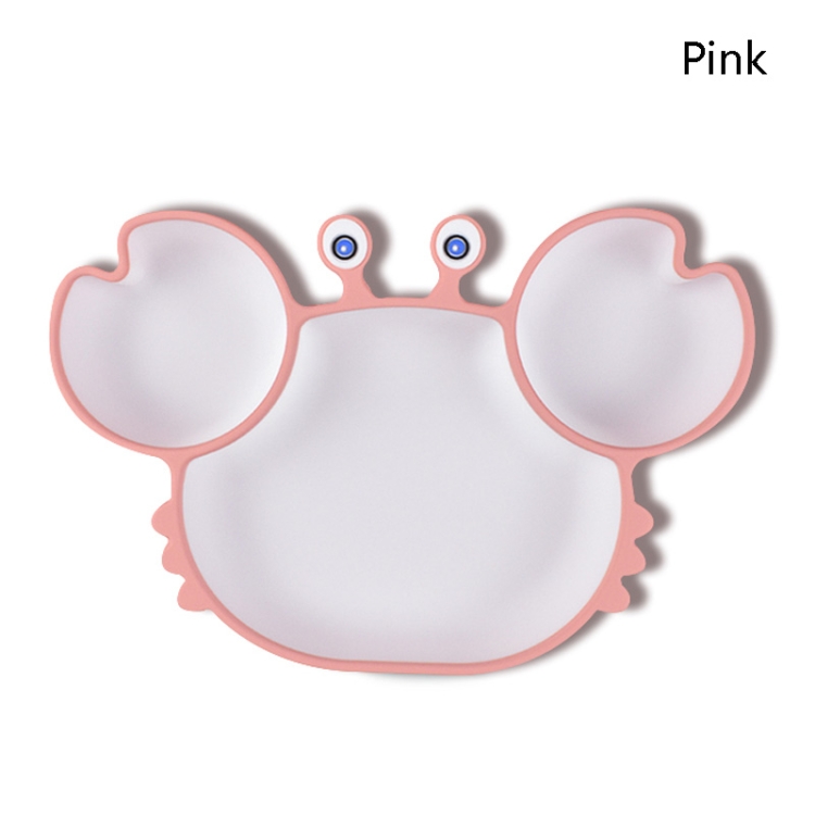 Children One-Piece Full Silicone Table Cartoon Crab Separation Plate, Pink, Green, Blue, Brown