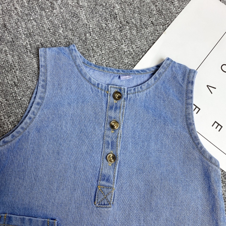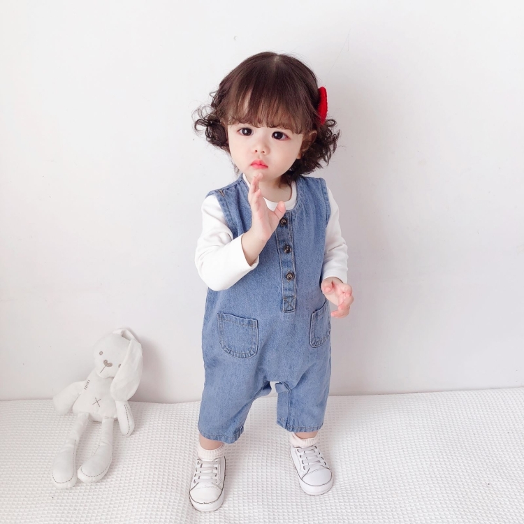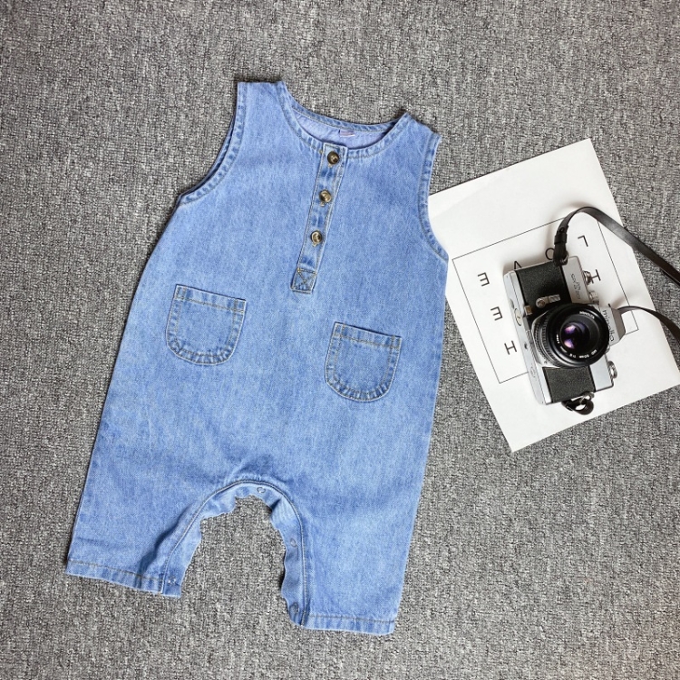 Children Soft Denim Jumpsuit Outing Romper, 66cm, 73cm, 80cm, 90cm, 100cm