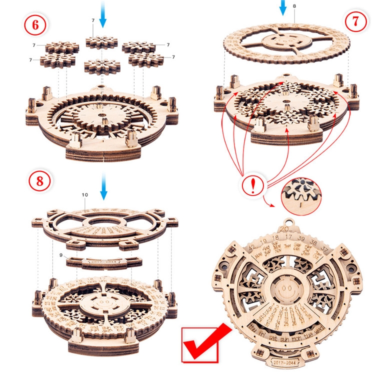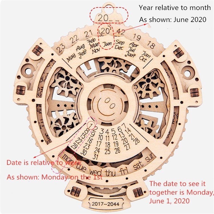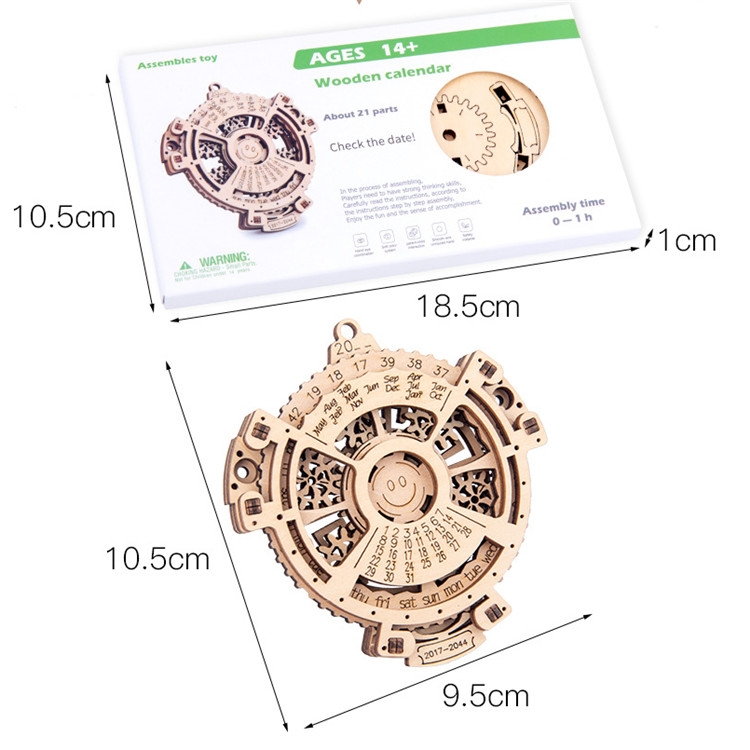 Children Wooden Mechanical Gear Perpetual Calendar 3D Puzzle Model DIY Assembled Toys