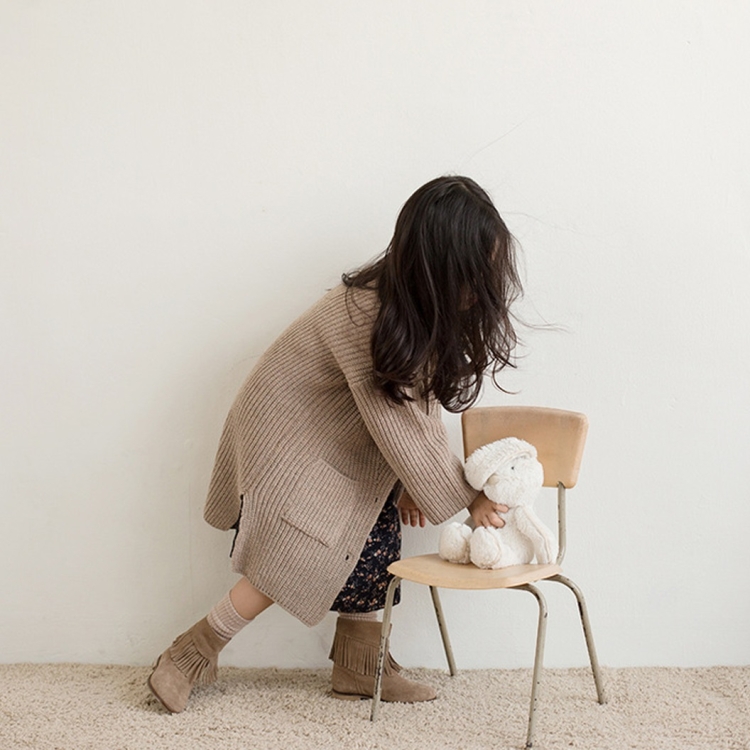 Childrens Clothing Girls Sweater Thick Knitted V-neck Childrens Cardigan Jacket Single-breasted Jacket, 110, 120, 130, 140, 150, 160