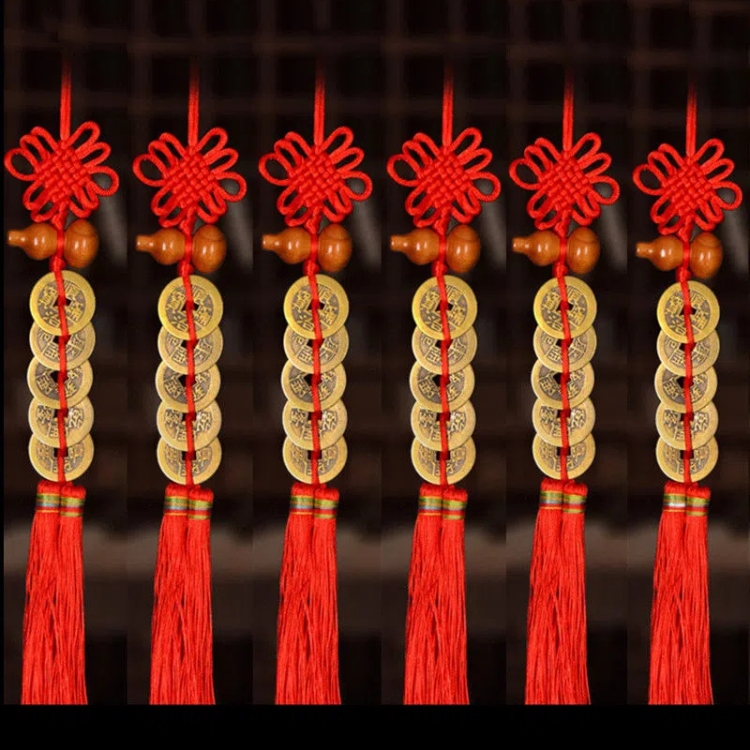 Chinese Traditional Auspicious Knot Five Emperors Coins Gate Pendant