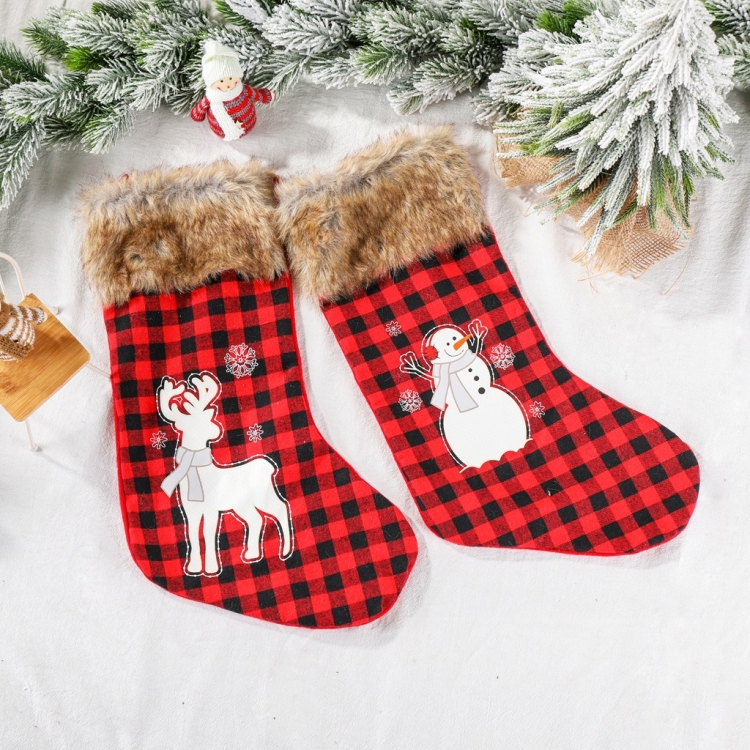 Christmas Decoration Red And Black Plaid Christmas Stocking Children Gift Candy Bag